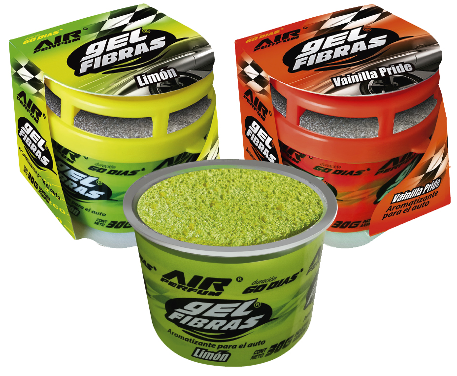 Desodorante ambiental en gel fibras. Su exclusiva fórmula combina durabilidad con exquisita variedad de fragancia.