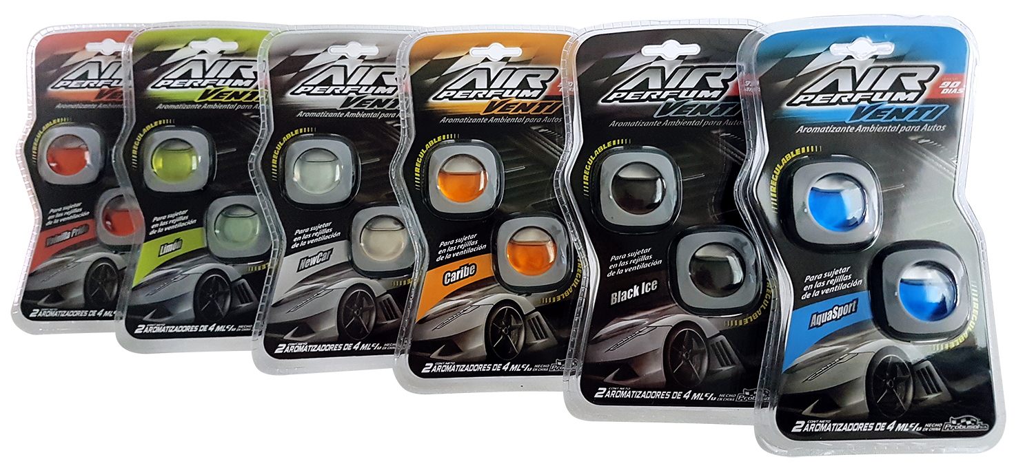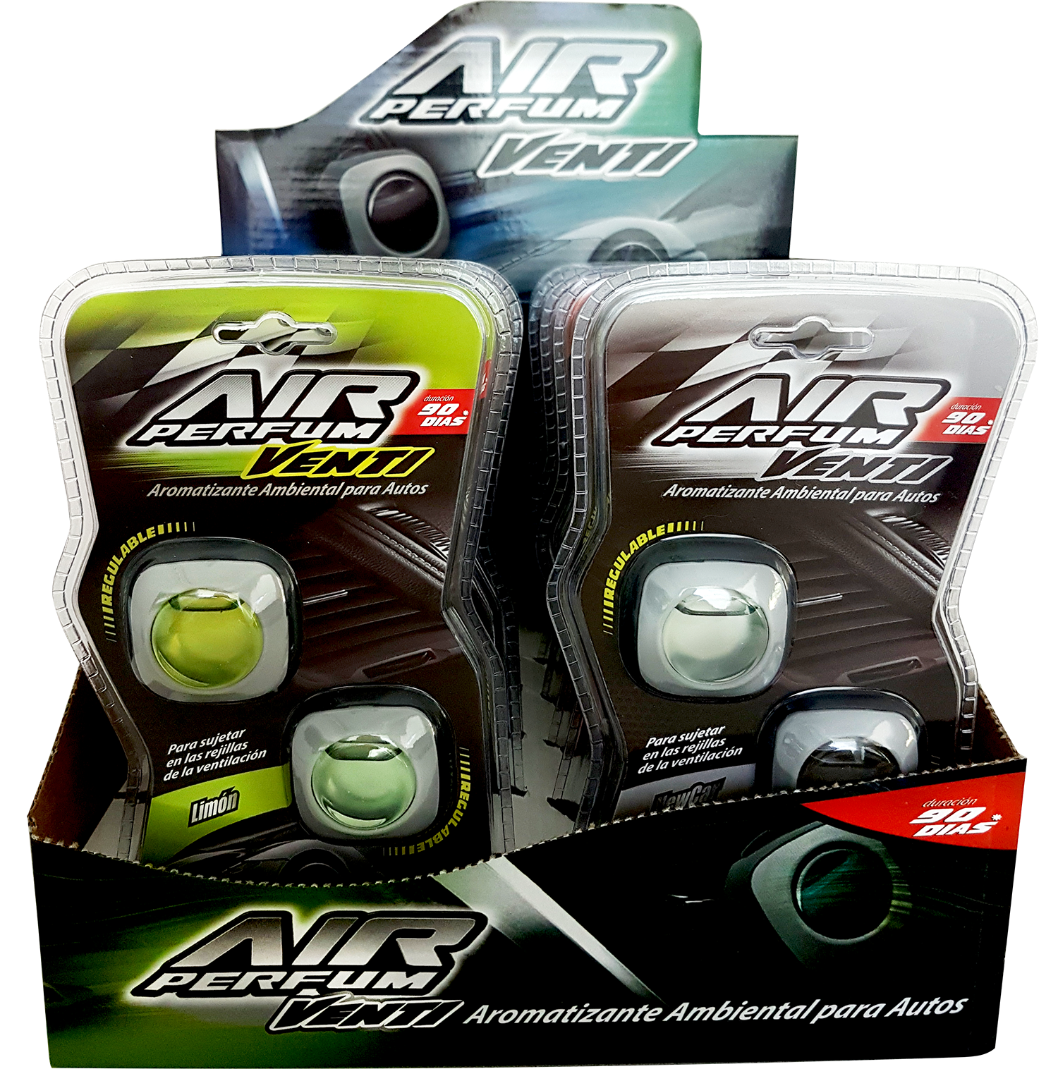 caja exhibidora surtida de12 blisters x 2 aromatizantes cada uno.