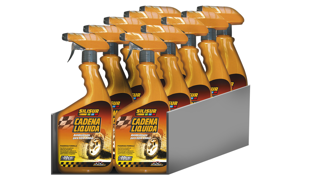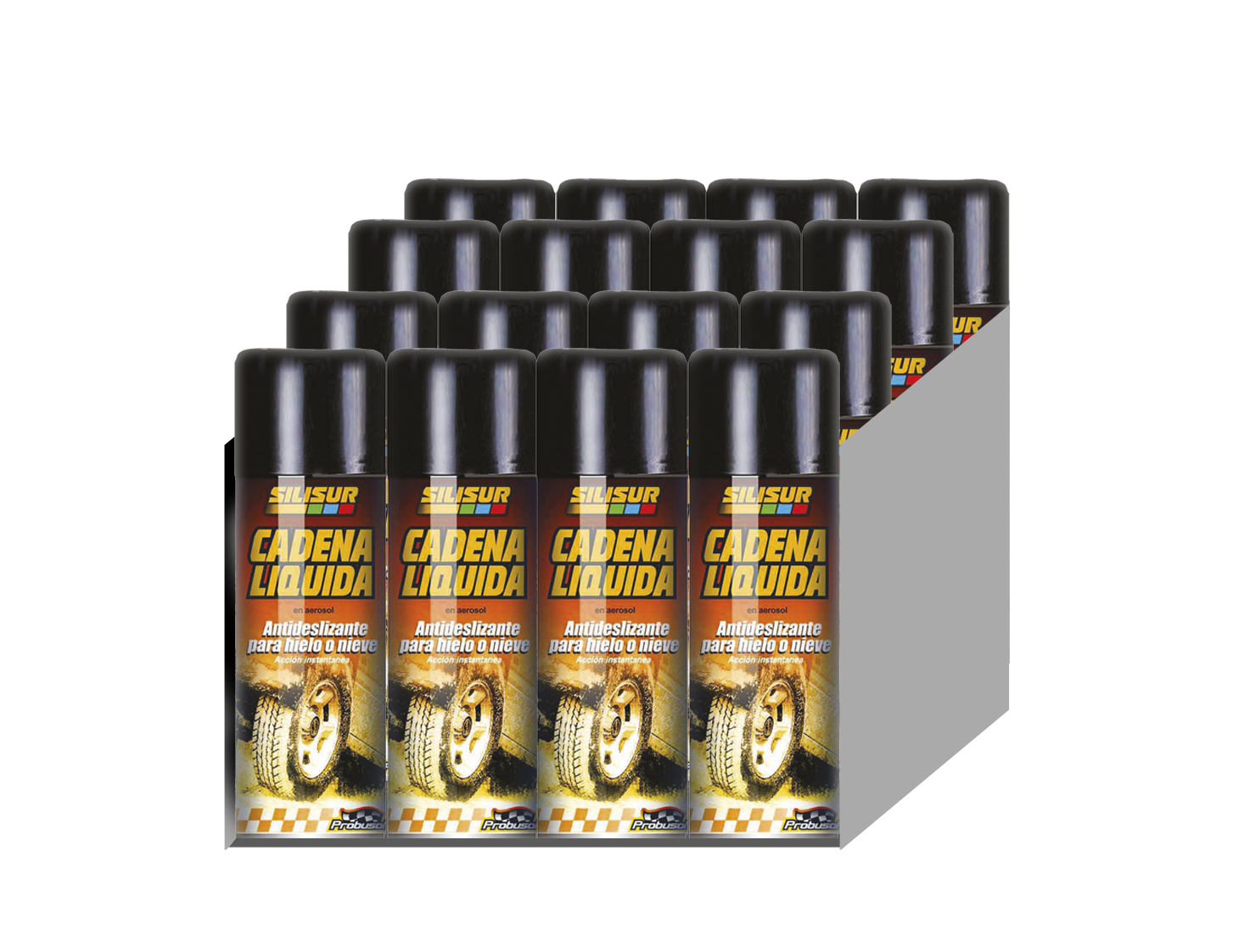 SILISUR Cadena Líquida en aerosol y Gatillo. ANTIDESLIZANTE CON MÁXIMO AGARRE DE LOS NEUMÁTICOS SOBRE HIELO Y NIEVE