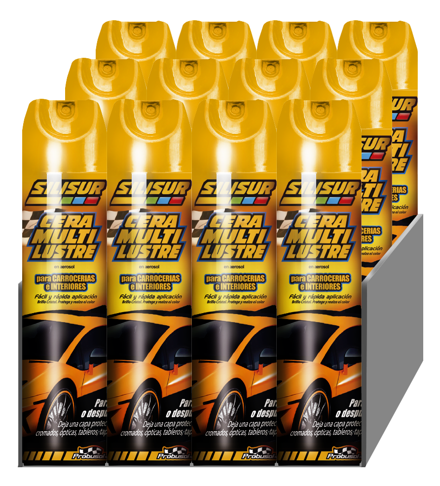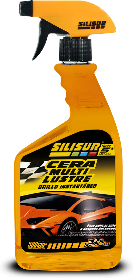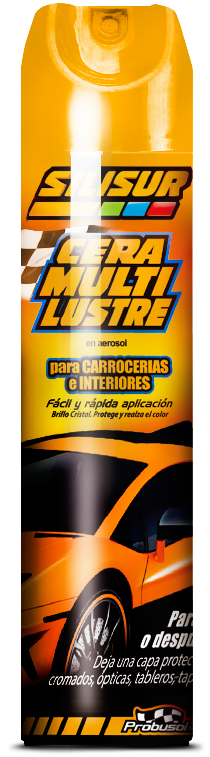 CERA MULTI LUSTRE Producto líquido y en aerosol para el cuidado del automóvil. Formula con un moderno concepto que combina limpieza y lustre de un modo efectivo, a base de una balanceada combinación de ceras y siliconas, sin abrasivos y agradable fragancias. Otorga a la superficie tratada un brillo duradero a la vez que mantiene el polvo y el hollín. Ideal para Autos, 4x4 y motos