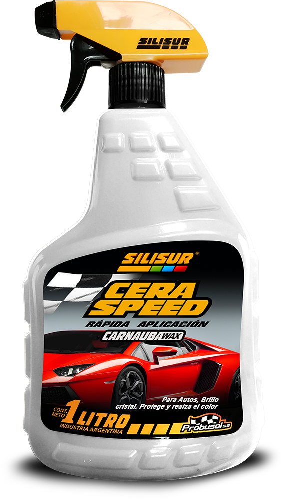 CERA SPEED CON CARNAUBA WAX Producto líquido de fácil y rápida aplicación. Brillo cristal y protección, es un producto para el cuidado del automóvil. Formulado de avanzada en base de ceras seleccionadas y siliconas, sin abrasivos y agradable fragancias. Protege y restituye el brillo original en todo tipo de pinturas: metálicas, bicapa, tricapa.