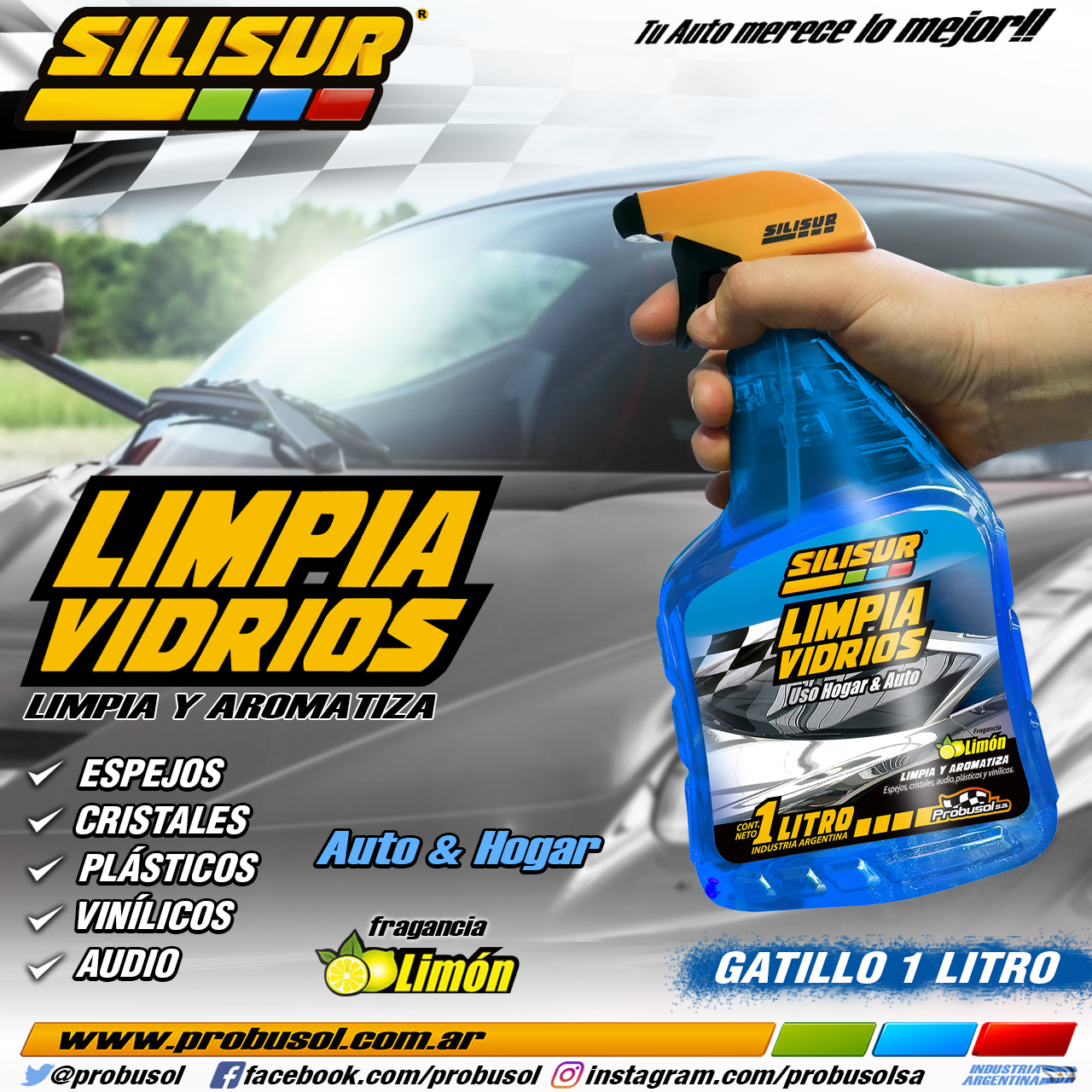SILISUR LIMPIA VIDRIOS REMUEVE SUCIEDAD Y GRASITUD SOBRE CRISTALES Y ESPEJOS. RECOMENDADO PARA EL AUTO & HOGAR. Es ideal para limpiar espejos, ópticas, plásticos y vinílicos.