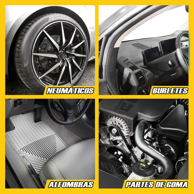 Es especialmente indicado para neumáticos de autos, paragolpes, molduras, baguetas, burletes, mangueras, cubrealfombras, etc.