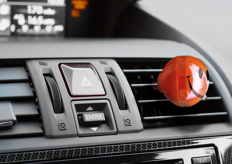 Aromatizante ambiental para el auto. Divertidas pelotitas aromatizantes para colocar en las rejillas del aire acondicionado. Son regulables con 30 días de duración.
